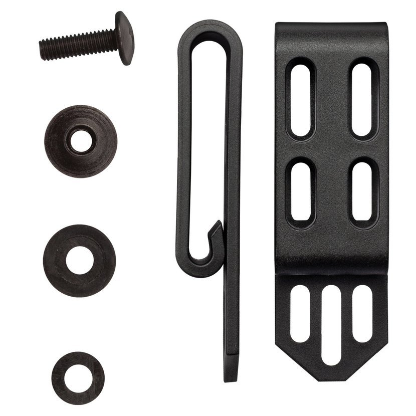 Pro šířky opasku až do 45 mm a tloušťky 6 mm; řemeny, opasky, popruhy, molle vazby apod. Velký C-CLIP se hodí pro větší pevné nože Cold Steel s plastovým pouzdrem Secure-Ex