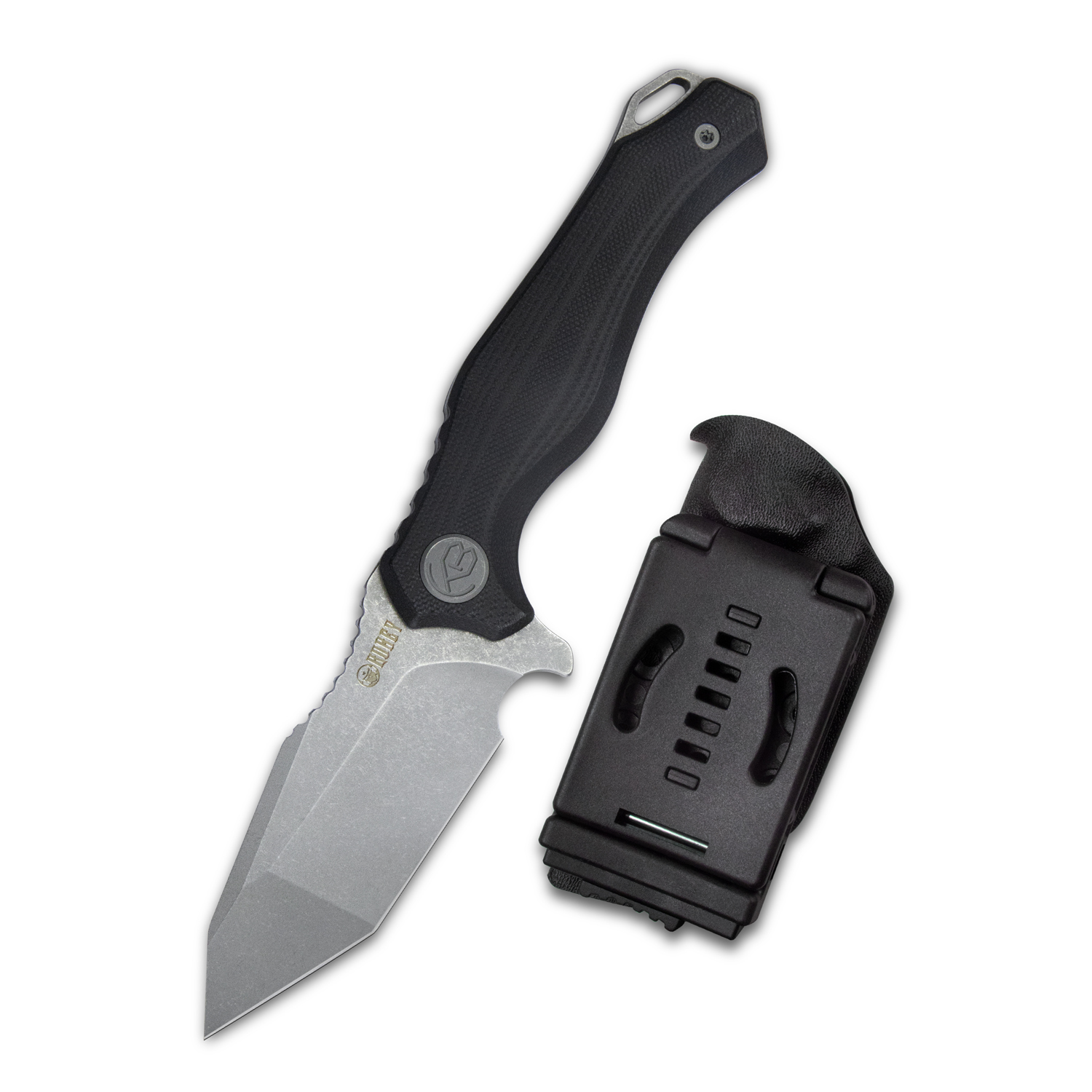 Kubey Golf je nůž s pevnou čepelí vyrobenou z kvalitní oceli AUS-10 a s rukojetí z materiálu G10, který je znám pro perfektní odvádění vlhkosti a odolnost proti opotřebení. K noži je součástí balení pouzdro z Kydexu.